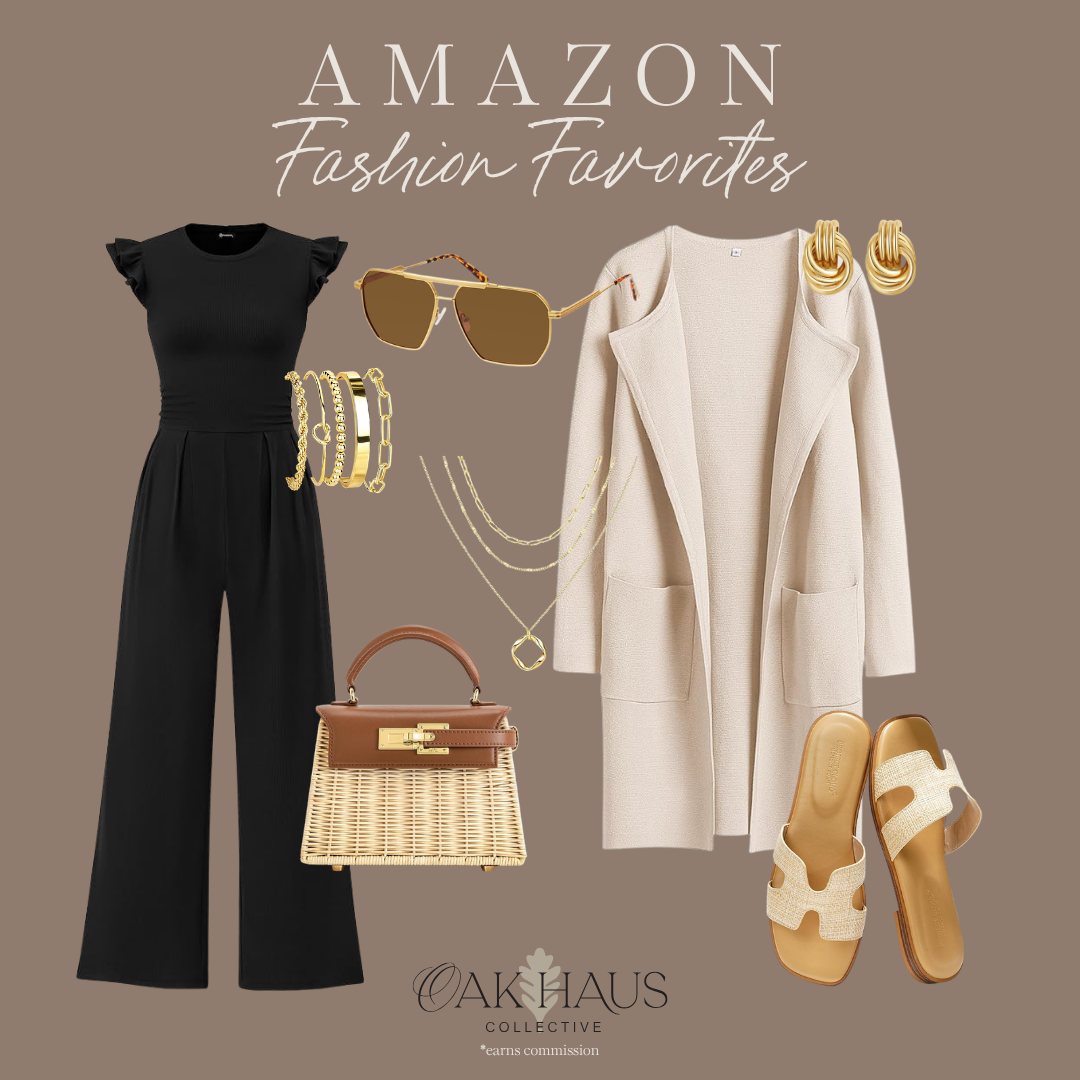 Fashion Favorites from Amazon! I absolutely love this jumpsuit that you can dress up or down! I’ve curated jewelry and accessories to complete the whole look!
