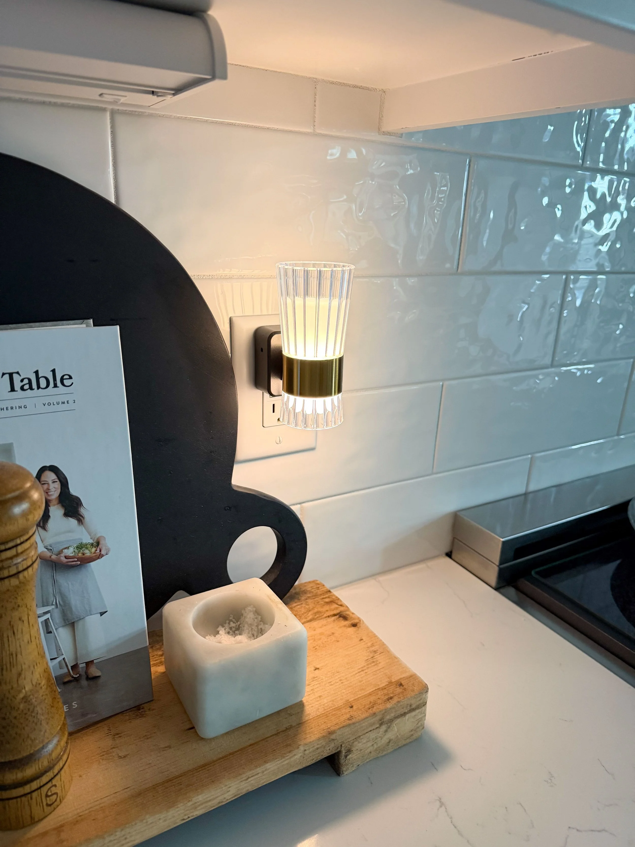 These nightlights add the perfect ambiance and coziness to any space in your home! They are automatic and come on when the room gets dark. They all have a dimmer as well so you can adjust the brightness.