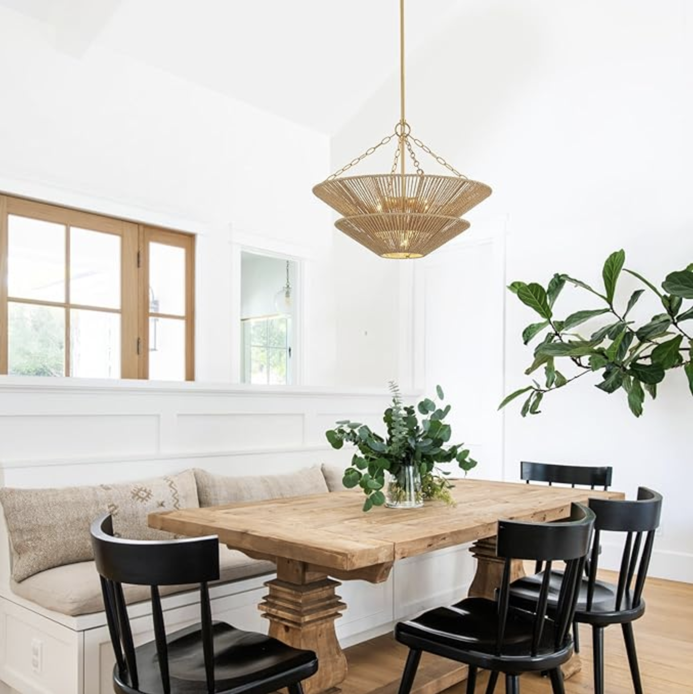 I love this stunning hand-woven rattan chandelier! It is the perfect statement piece for achieving that organic modern home decor look. The hand-woven rattan brings in such beautiful natural texture, while the gold finish adds a touch of warmth and sophistication. For the price, this chandelier looks like it came from a high-end lighting showroom, but instead it’s from Amazon. The hand-woven rattan adds so much visual interest and texture to any space, whether you hang it in your dining room, entryway, or even bedroom. The gold accents give it that luxurious feel without being too flashy, and the natural materials make it feel grounded and warm.