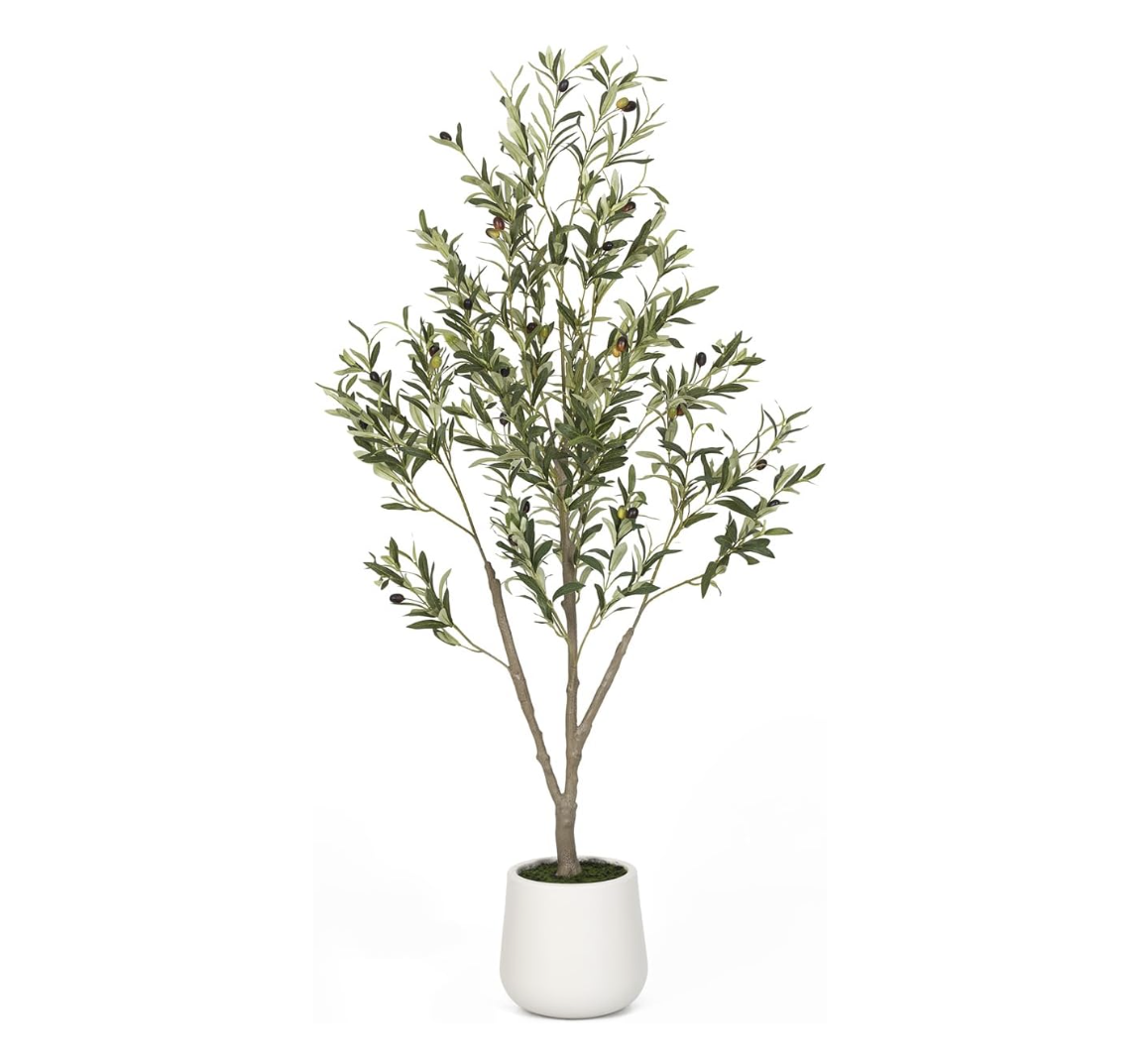 Greenery is essential for the organic modern look, but let's be real – not all of us have green thumbs! This gorgeous artificial olive tree is the perfect solution. The realistic foliage and natural-looking planter give you all the benefits of a statement plant without any of the maintenance. The olive tree's silvery-green leaves and twisted branches add that perfect organic element to any corner.