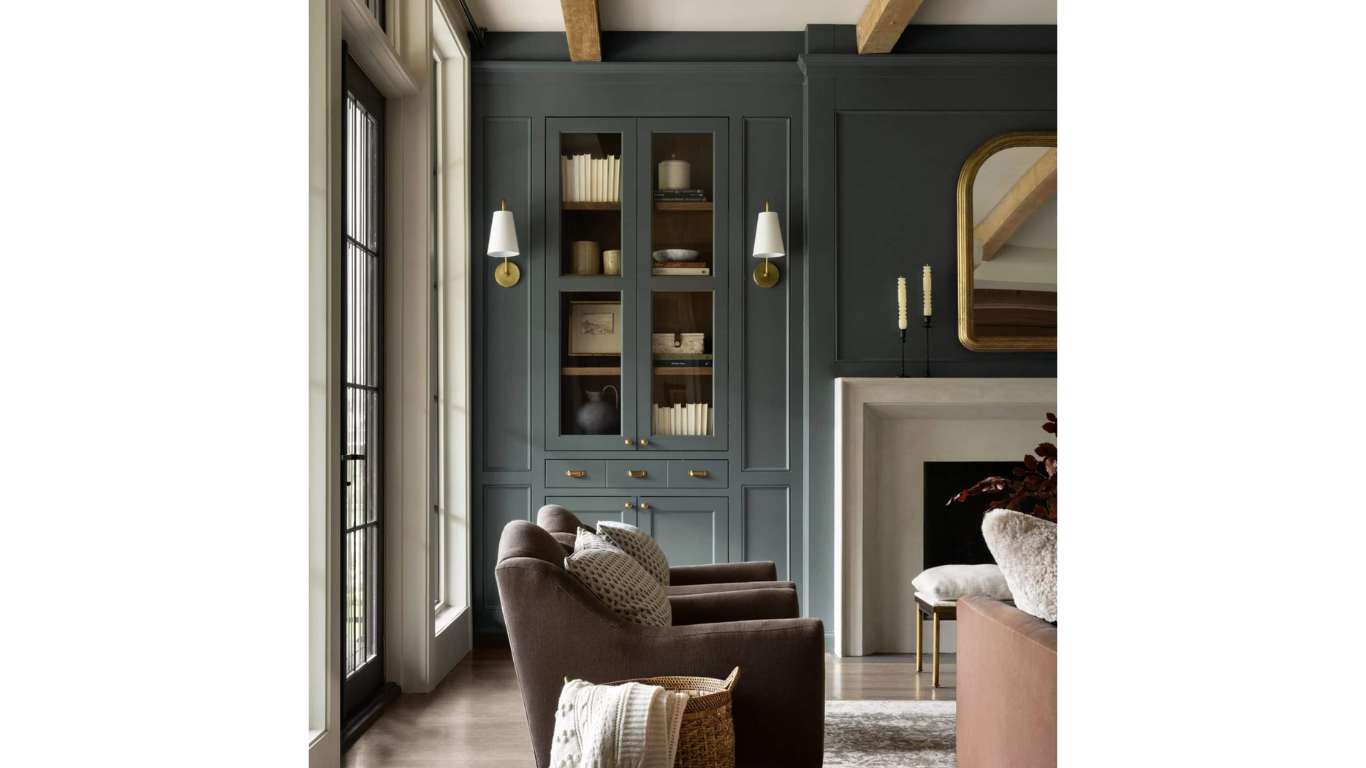 Mineral Gray is one of the most popular paint colors for anyone looking to add a touch of moody sophistication to their space. This blue-gray with green undertones creates depth and interest while still feeling calm and collected. It's perfect for creating that serene, spa-like atmosphere in bedrooms and bathrooms, but it also works beautifully as a statement wall in living spaces. I’ve been seeing this type of color more and more in the home office or sitting rooms and I love the way it shifts from blue in bright light to gray in softer light tom keep things interesting.